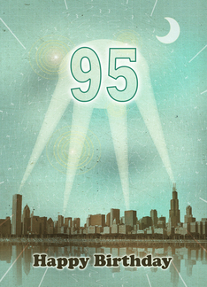 95th Birthday, Retro City Movie Poster with Spotlights