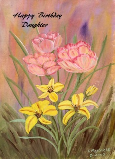 Birthday Daughter, Pink and yellow flowers,outside,garden,nature,