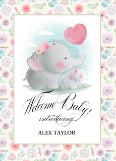 Welcome Baby. Custom Name Birth Announcement. Elephants Mom & Baby