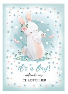 It's a Boy! Baby Boy Birth Announcement. Bunnies Mom and Baby design