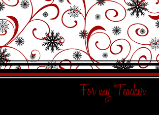 Christmas for Teacher Card - Black Red White Swirls & Snow