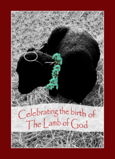 Christmas, Black Lamb With Evergreen Garland, Berries, Halo