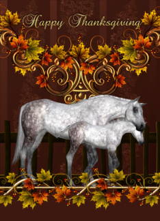 Thanksgiving Card With Mare And Foal - Equine Thanksgiving Card