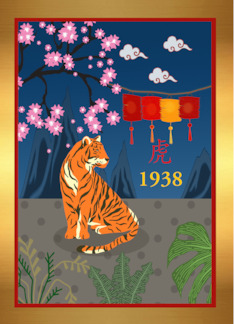 1938 Birthday Year of the Tiger with Chinese Landscape Theme