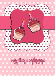 Happy birthday in Polish, Polish birthday card, cupcake with candle, pink