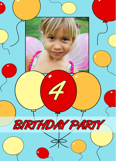 4th Birthday Party Invitation Photo Card - Colorful Balloons