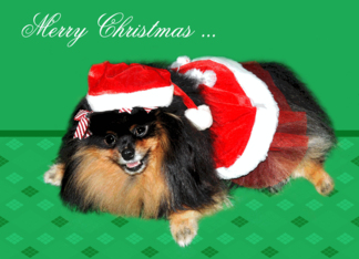 Christmas to Wife, Pomeranian as Mrs. Santa Claus on green