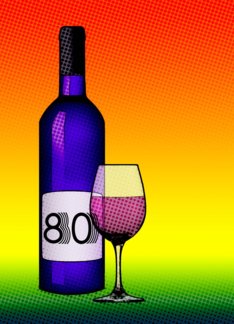 Happy 80th birthday! : halftone wine bottle and glass