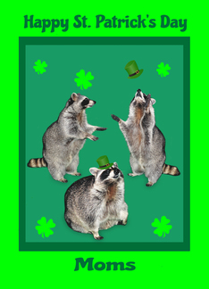 St. Patrick's Day to Moms, Raccoons with shamrocks and hats