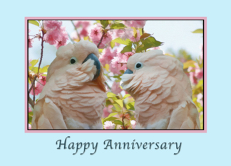 Anniversary, Wedding, Parrots and Crab Apple Blossoms