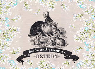 Frohe Ostern. Easter Card in German. Vintage Rabbits