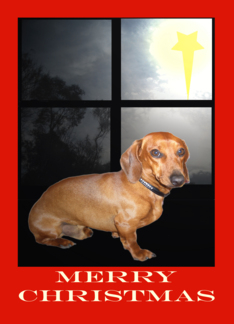 Merry Christmas,for teacher, Dachshund in window with Christmas star.