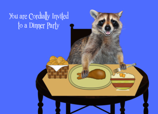 Invitations to Dinner Party, general, adorable raccoon, table Setting
