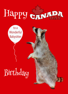 Birthday On Canada Day To Babysitter, Raccoon with balloon, maple leaf