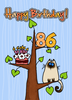 Happy Birthday - 86 years old - Kitty and Cake in tree