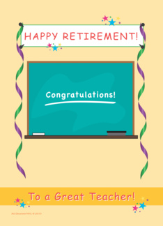 Congratulations on your retirement! You get an A+ for your work, and your next assignment is to enjoy your retirement to the fullest! You are dismissed ... Forever! Happy Retirement!