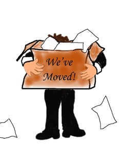 Man with Box of Papers Business Office We've Moved Announcement