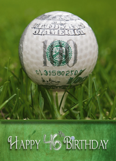 46th birthday, golf ball with 100 dollar design