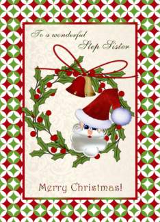 Christmas card for Step Sister - Santa, bells and holly wreath