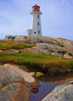 Blank Note Card, Red and White Lighthouse Reflected in Water