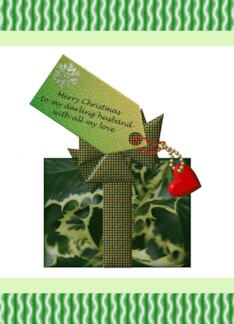Christmas For Husband Gift With Holly Design Green Bow Red Heart
