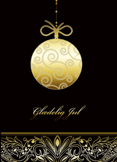 Ględelig jul, Merry christmas in Danish, gold ornament, black