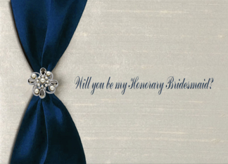 Honorary Bridesmaid Request, Navy Satin Ribbon Look with Jewel Look