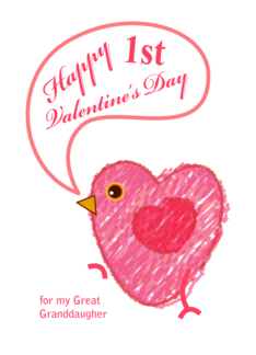 Happy 1st valentine's day, for my great granddaughter, pink chick with heart
