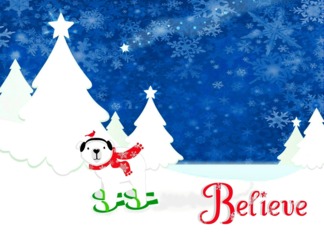 Christmas Magic Polar Bear and cardinal in snow shoes believe!