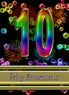 Spanish 10th anniversary congratulations with fireworks and bubbles