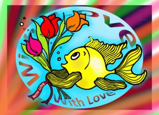 With Love Happy Valentine Fish with flowers roses cute funny cartoon