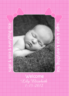 Baby Girl Customizable Birth Announcement Photo Card Sugar and Spice