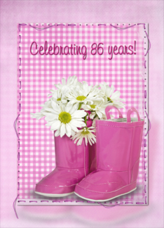 86th birthday, boots, daisy, gingham, birthday, pink