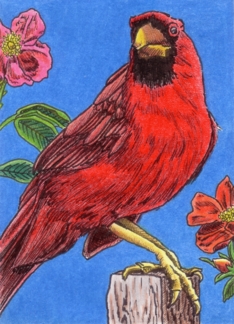 Cardinal with Alba Roses