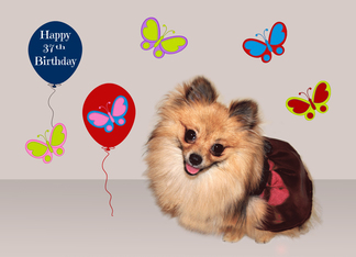 37th Birthday, adorable Pomeranian surrounded by butterflies