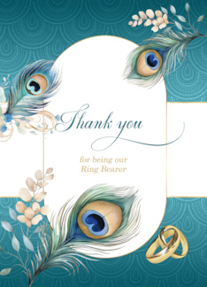 Ring Bearer Wedding Thank You Peacock in Teal and Gold