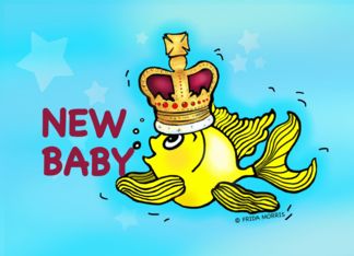 New Baby Announcement cute goldfish wearing a crown cartoon