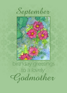Happy September Birthday Godmother Pink Aster Flower Watercolor