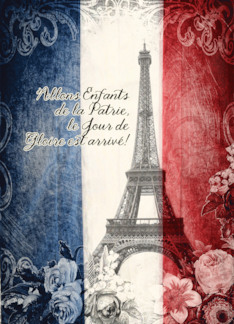Bon 14 Juillet la Tour Eiffel la Marseillaise Fleurs Vintage