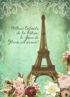 Bon 14 Juillet la Tour Eiffel la Marseillaise Fleurs Vintage