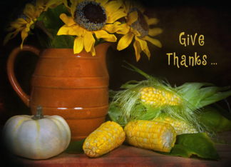 Thanksgiving sunflower bouquet and corn with pumpkin