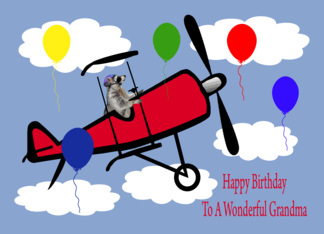 Birthday To Grandma, Raccoon flying an airplane