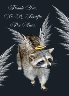 Thank You To Pet Sitter, Raccoon with angel wings and a halo on black