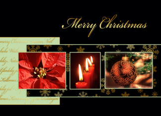 Merry Christmas, gold effect, poinsettia, candle, ornament