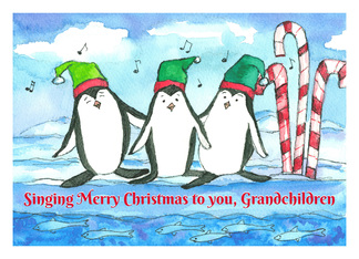 Merry Christmas Grandchildren Holiday Penguins Fish